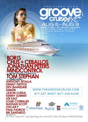***DON'T FORGET TO SAVE $50 PER PERSON WITH MY DISCOUNT CODE: "WHETBARBIE"*** Book before JUNE 29th & we will give you a FREE BOTTLE of GREY GOOSE!! (New bookings only) Bottle will be ready & awaiting your thirsty lips when you get to your cabin! Theme Party announced! Naughty Nautical is back and it's WHET FOR FIRST TIME EVER GROOVE CRUISE NEW YORK Aug 5-9, 2010 Carnival Glory NYC- St. Johns, Canada OVER 85% SOLD OUT 877-GET-WHET (438-9438) http://www.TheGrooveCruise.com SEXY LADIES Get your friends & book our "FEMALE FOURSOME" promotion! Rooms of four females save an addition $44 per person! This promotion CAN be used in addition to my Discount DJ LINEUP: BORIS CHUS & CEBALLOS JONATHAN PETERS MIND CONTROL TOM STEPHAN DENNY TSETTOS ANTHONY ATTALLA +10 MORE SICK DJs!!! Quick Info on our Groove Cruise NYC Destination, St. Johns, Canada: -St. John's is the oldest English-founded settlement in North America. -In 2009 St. John's was named the fastest growing metropolitan area in Newfoundland. -In the past decade, it has been famed its nightlife and rich musical culture. -St. John's is known as "Canada's Weather Champion" CARNIVAL GLORY SHIP FACTS: Decks - 13 Passenger capacity - 2,974 Total crew - 1,150 Tonnage - 110,000 Ship size - Large Ship length - 953 feet ***DON'T FORGET TO SAVE $50 PER PERSON WITH MY DISCOUNT CODE: "WHETBARBIE"*** SO WHATS INCLUDED FOR THE PRICE? * Prices INCLUDE ALL food onboard, taxes, port charges, entertainment and party fees for all private Groove Cruise events on and off the ship. Since 2004, the Groove Cruise has been seen/heard in the NY Times, DJ Times, Travel Agent Mag, Miami Herald, Toronto Star, TimeOut NYC, 944, CNN, FOX News, MTV, SiriusXM Radio, etc etc http://www.TheGrooveCruise.com 877-GET-WHET (438-9438) PS: Passports not needed (birth certificate) Groove Cruise will save you 40% VS a weekend in Vegas or South Beach. Portion of proceeds benefit NextAID. Are you following us? http://www.Twitter.com/GrooveCruise http://www.Facebook.com/GrooveCruise http://www.Youtube.com/TheGrooveCruise
