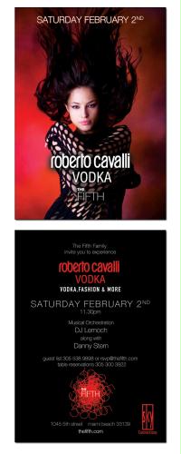 Roberto Cavalli Vodka, Fashion, Models & More Saturday February 2nd 11pm Dj Lemoch along with Danny Stern guest list rsvp@thefifth.com or 305 538 9898 table reservations 305 300 3922 www.thefifth.com